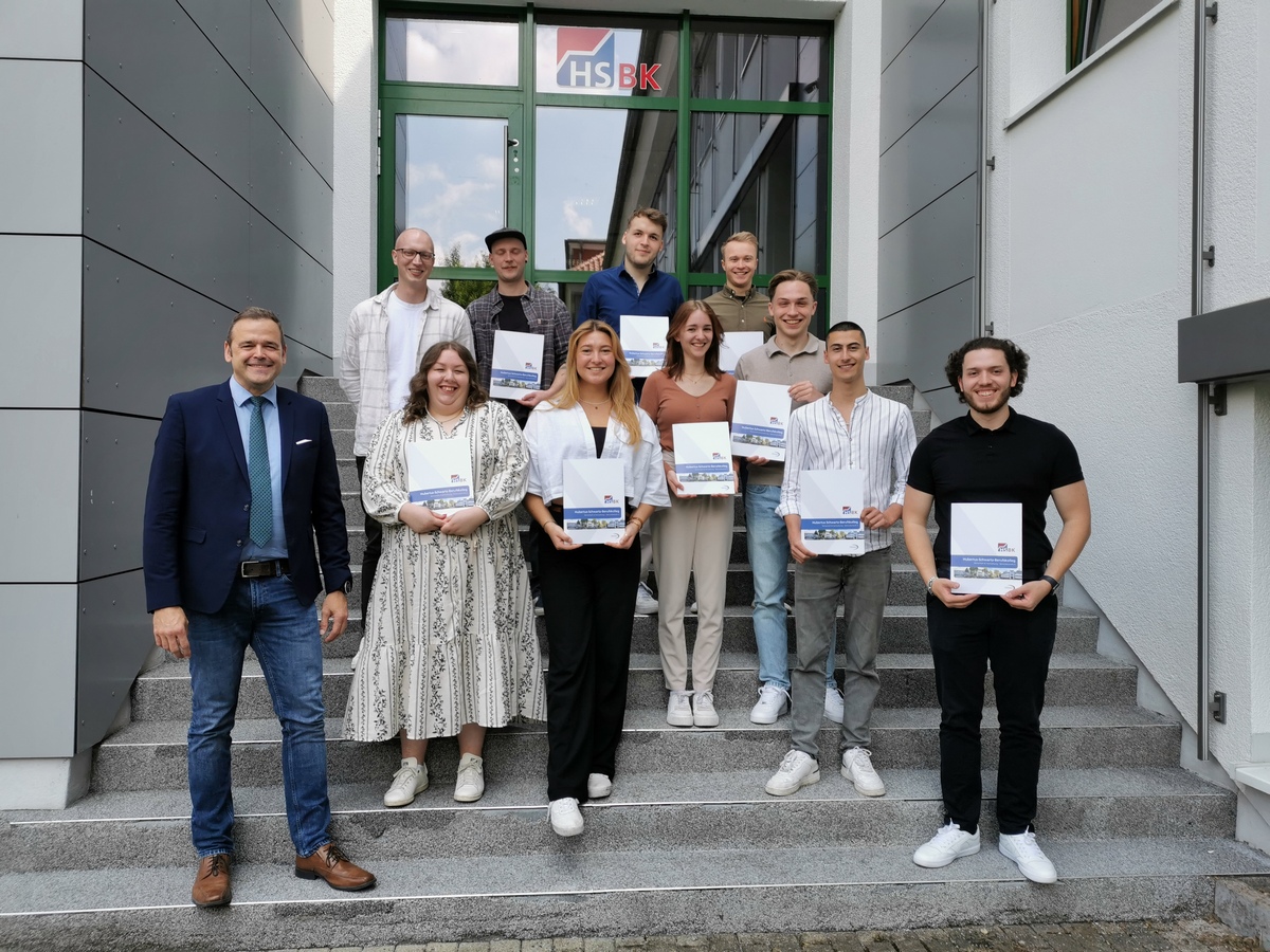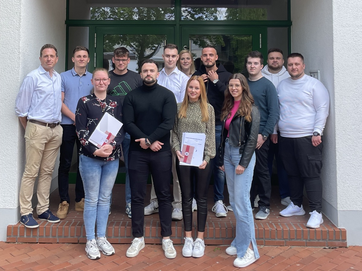Bereits vorzeitig zum Wintertermin bestanden Philipp Deimel, Anna-Sophie Dietz, Lukas Korb, Pia Gutsmann und Danica Raffenberg (IO2) und Hagen Zachan-Blume (IO1) die Abschlussprüfung.