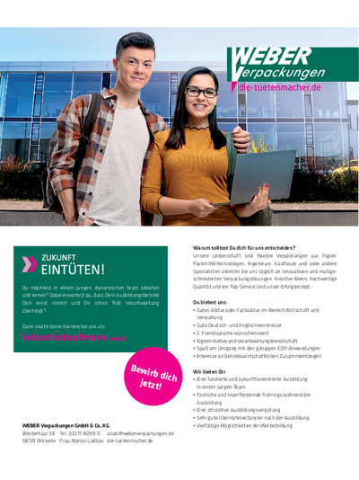 | Weber Verpackungen GmbH & Co. KG | Westerhaar 38 | 58739 Wickede | >> zur Webseite |
