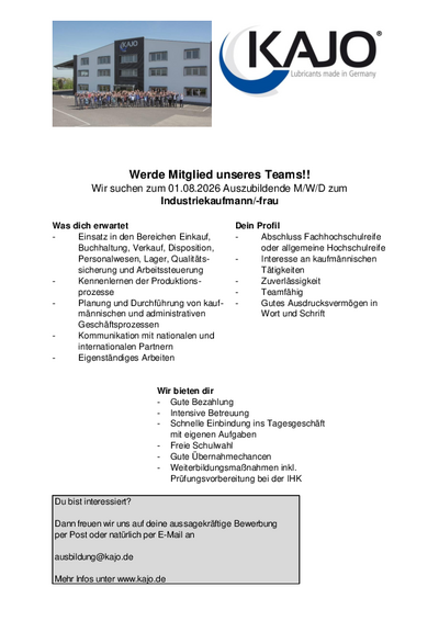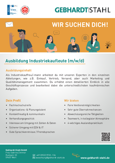 Für eine Ausbildungsstelle im Ausbildungsberuf 'Industriekauffrau/mann' benötigen Sie einen Ausbildungsvertrag mit einem ausbildenden Unternehmen. Für den Zugang zur Ausbildung bestehen formal keine Zugangsvoraussetzungen; die Ausbildung im dualen System steht grundsätzlich allen offen.