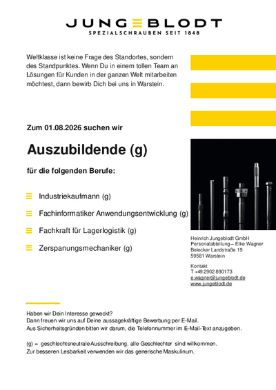 | Heinrich Jungeblodt GmbH & Co.KG | Belecker Landstraße 19 | 59581 Warstein | >> zur Webseite |