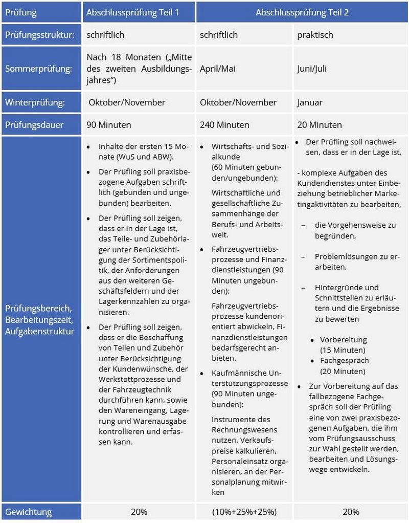 Voraussetzungen für die Zulassung zur Abschlussprüfung sind schriftliche Ausbildungsnachweis. Im Ausbildungsnachweis sind die betrieblichen Tätigkeiten, Unterwei-sungsthemen, Lehrgespräche sowie Themen des Berufsschulunterrichts einzutragen.