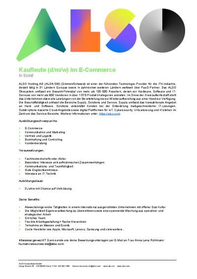 Seit dem 1. August 2018 gibt es den neuen dualen Ausbildungsberuf "Kaufmann/Kauffrau im E-Commerce". Es ist der erste neue kaufmännische Ausbildungsberuf seit zehn Jahren und auf diesen speziellen Wachstumsmarkt zugeschnitten.