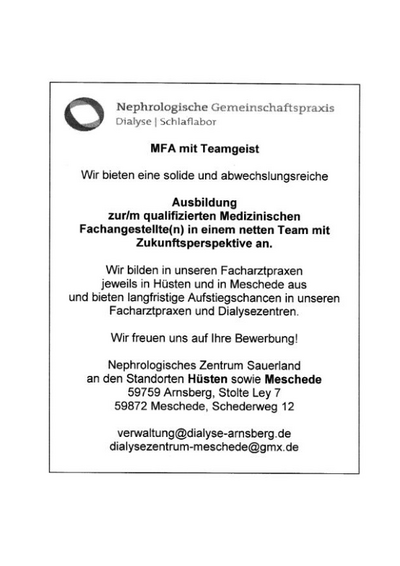 Auch eine Vielzahl von beruflichen Fortbildungen steht den Medizinischen Fachangestellten zur Verfügung. Die Akademie für Fortbildung der Ärztekammer Westfalen-Lippe in Münster bietet zahlreiche Fortbildungen an.