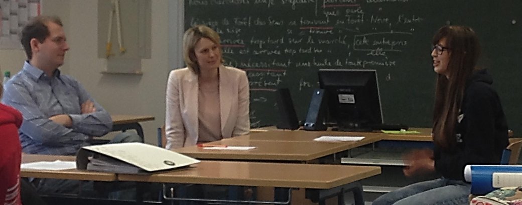 Am 25. und 26. Januar 2016 war das AzubiFinder-Team der IHK Arnsberg zu Gast bei den Fremdsprachenassistenten. An Praxisbeispielen zeigten die Ausbildungsmanager Florian Krampe und Lisa Plum den gesamten Ablauf eines Bewer-bungsverfahrens um Ausbildungsplätze und Duale Studiengänge (Ausbildung plus Studium). Hierbei wurden die Bewer-bung mit Lebenslauf, Einstellungstests, Assessment-Center und Vorstellungsgespräche thematisiert und durch fundierte Praxisbeispiele ergründet.
