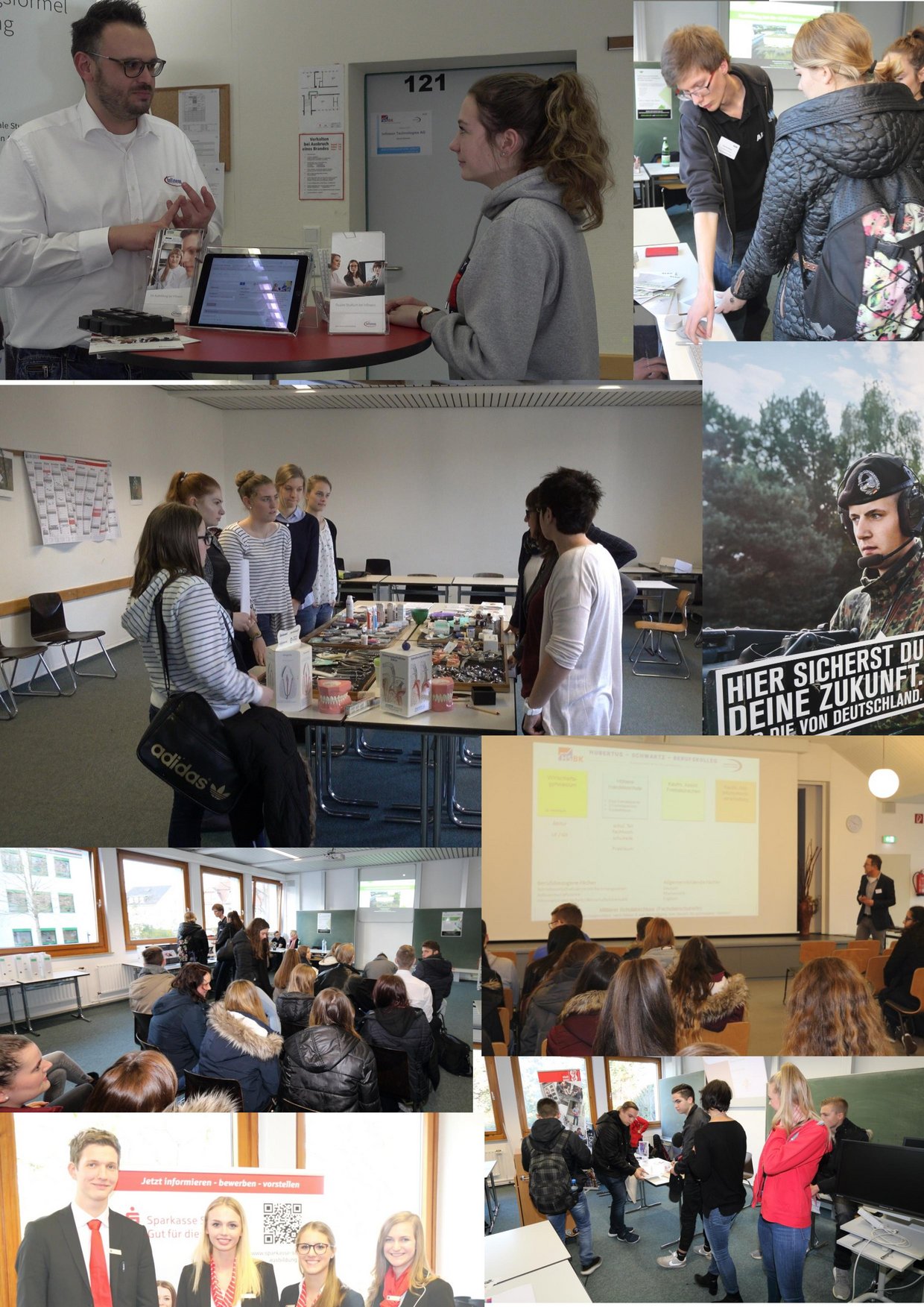 Mit Hilfe der anwesenden Ausbildungsbetriebe wurden die Ausbildungsberufe vorgestellt, für die das Hubertus-Schwartz-Berufskolleg als Berufsschule zuständig ist. Weiterhin waren Hochschulen, Weiterbildungsinstitutionen und behördliche Einrichtungen der Umgebung vertreten, die innerhalb ihrer Vorträge das große Bildungsspektrum anschaulich darstellten. Dieses Angebot richtete sich dabei vor allem an die eigenen Schülerinnen und Schüler des Hubertus-Schwartz-Berufskollegs, die dadurch Informationen für ihren beruflichen Werdegang erhalten konnten.