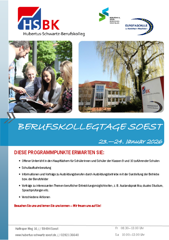 Berufskollegtage 2026 am Hubertus-Schwartz-Berufskolleg