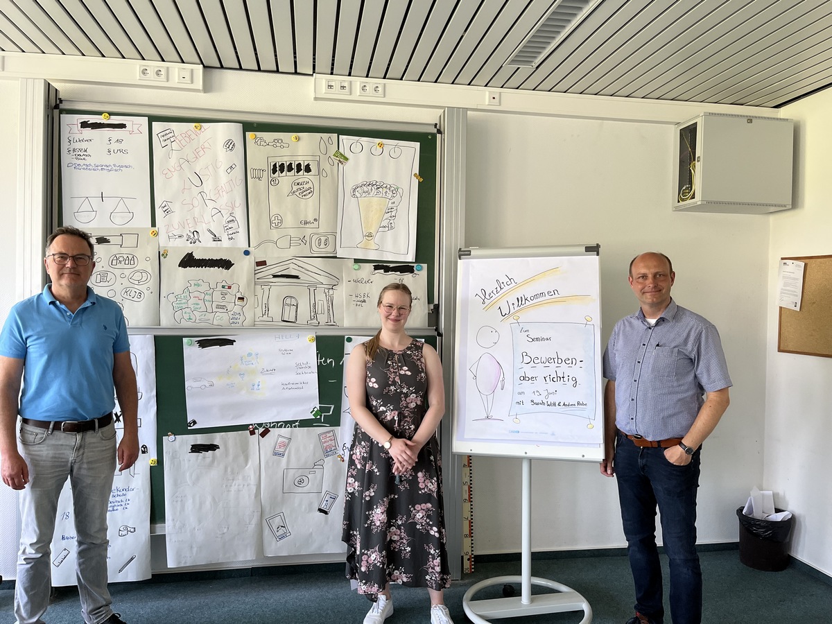 Für den Dienstag, 20.06.2023, standen die Themenbereiche Bewerbungsschreiben und Assessmentcenter auf dem Programm. Schülerinnen und Schüler hatten die Möglichkeit, sich auf reale Stellenausschreibungen zu bewerben. Die Mitarbeiterinnen der Arbeitsagentur Soest-Meschede, Andrea Rabe und Sarah Witt, die als Bewerbungsprofis an diesem Tag zur Seite standen, nutzten diese Bewerbungen als Grundlage für die Workshops "Bewerbungsverfahren" (Bewerbungstests, Vorstellungsgespräche, Assessmentcenter) und "Assessmentcenter" (Schwerpunkt Selbstdarstellung). Somit hatten die Schülerinnen und Schüler die Chance, Informationen aus erster Hand zu diesen in Praxis sehr dynamisch ändernden Bewerbungsprozessen zu erhalten und in den Workshops umzusetzen.
