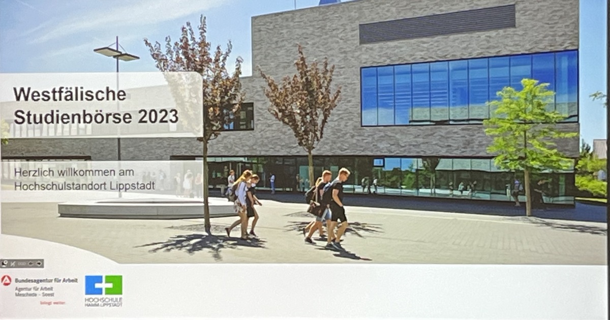 Am Dienstag (13.06.2023) stand der Besuch der Westfälischen Studienbörse an. Am Campus der Hochschule Hamm-Lippstadt konnten die Schülerinnen und Schüler nach einführenden Worten der Arbeitsagentur Soest-Meschede wertvolle Informationen über Studiengänge, Studienfinanzierung und Studienbedingungen erhalten.