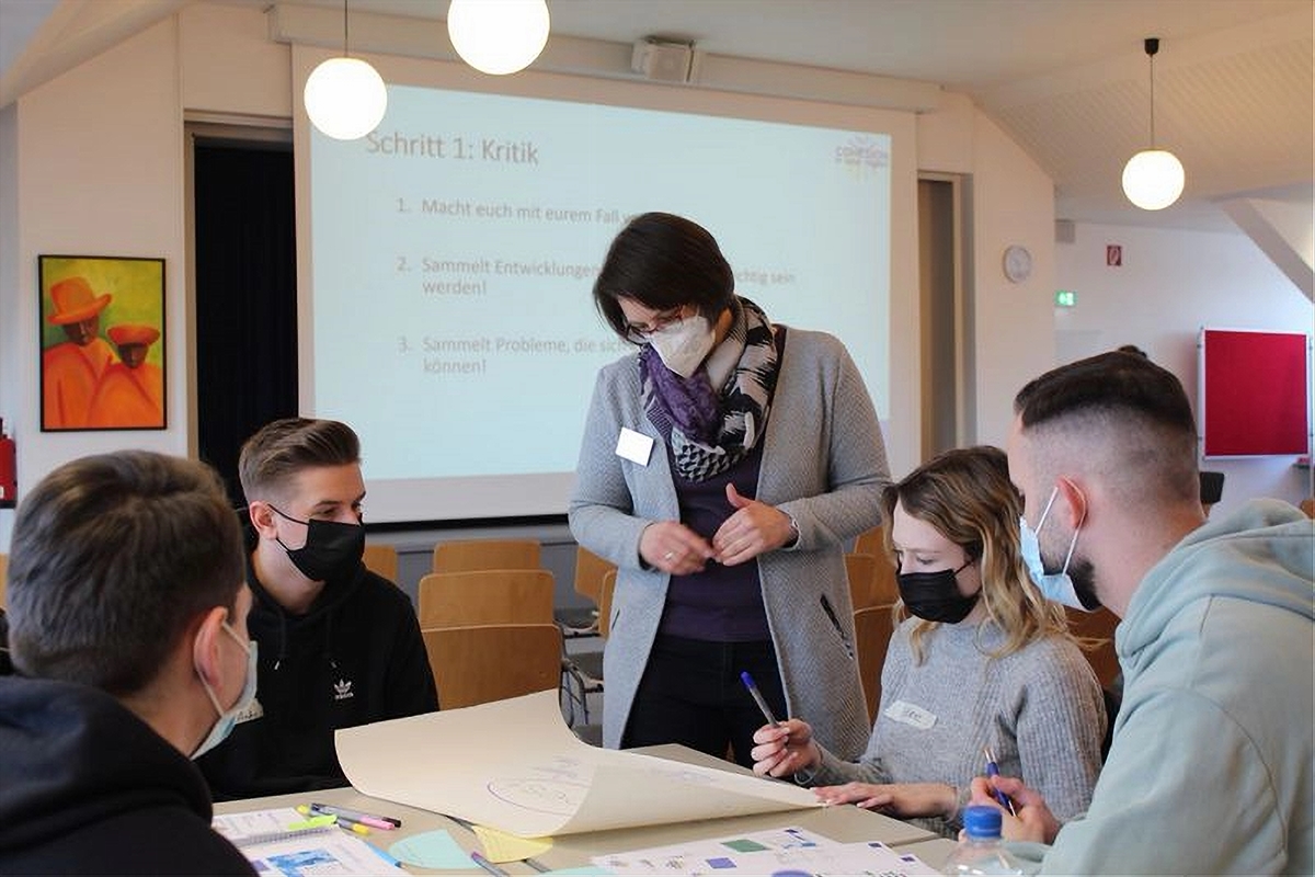 Ihre Businesspläne stellten die angehenden Industriekaufleute abschließend in Kurzpräsentationen den politischen Gästen vor. Am Dienstag, 22.02.22, war Frau Birgit Sippel, Mitglied des Europäischen Parlaments, zu Gast, die den Schülerinnen und Schülern zuhörte und konstruktive Rückmeldungen für ihre Projektideen gab. „Die Schüler:innen beschäftigen sich mit der EU-Regionalpolitik, dem demographischen Wandel, der Zukunft der Arbeit, Infrastruktur und Digitalisierung und präsentieren ihre Ideen und Anregungen. Ich danke den Schüler:innen für die vielen guten Ideen und den wertvollen Austausch!“