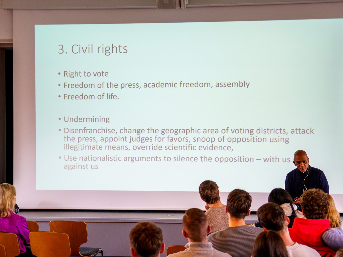 Er nahm dabei die Teilnehmenden stets mit auf seine spannende Reise und versuchte Ihnen diese eher sperrigen Themen näher zu bringen, sich aufdrängende Gefahren wahrzunehmen und Ihnen klarzumachen, was "Global Citizenship" bedeutet: sich als Teil einer weltweiten Gemeinschaft zu sehen und Verantwortung für globale Herausforderungen zu übernehmen“.