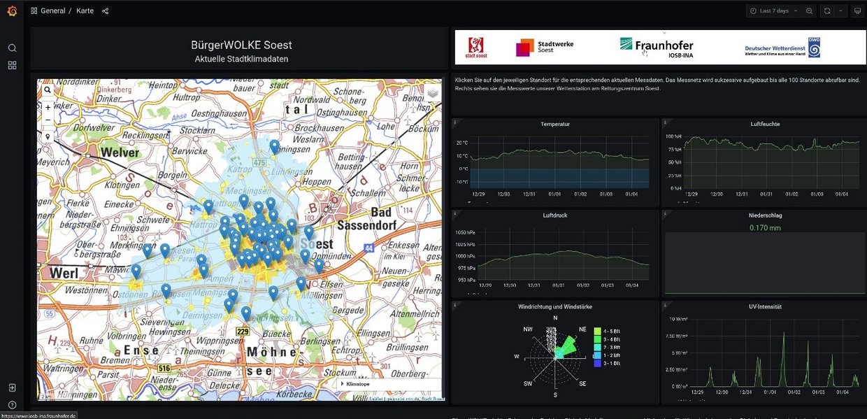 In Zusammenarbeit mit der Stadt Soest, den Stadtwerken Soest, dem Deutschen Wetterdienst und dem Institutsteil für industrielle Automation INA des Fraunhofer IOSB wurde dieses Projekt ermöglicht. Finanziert wurde das Projekt von der Stadt Soest. Insgesamt gibt es 100 Messpunkte in Soest und Umgebung.