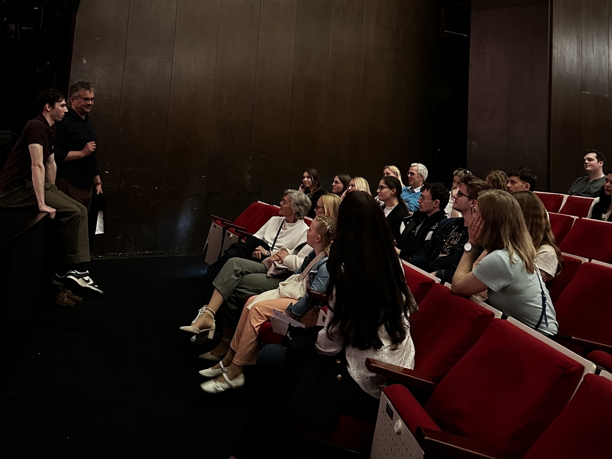 Am vergangenen Freitag, 16.09.2025, machten sich rund 50 SchülerInnen und acht LehrerInnen auf den Weg zum Theater Dortmund. Zunächst nahmen wir an einer exklusiven Backstage-Führung teil und sahen unter anderem den Mal- und Ballettsaal. Wir durften sogar einen Blick hinter die Bühne kurz vor Vorstellungsbeginn werfen. Während der Führung haben wir auch Luke, einen Tänzer des NRW Juniorballetts, schon etwas näher kennenlernen dürfen – er stand uns freundlich Rede und Antwort.