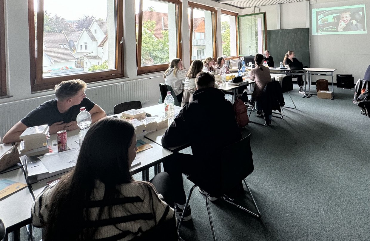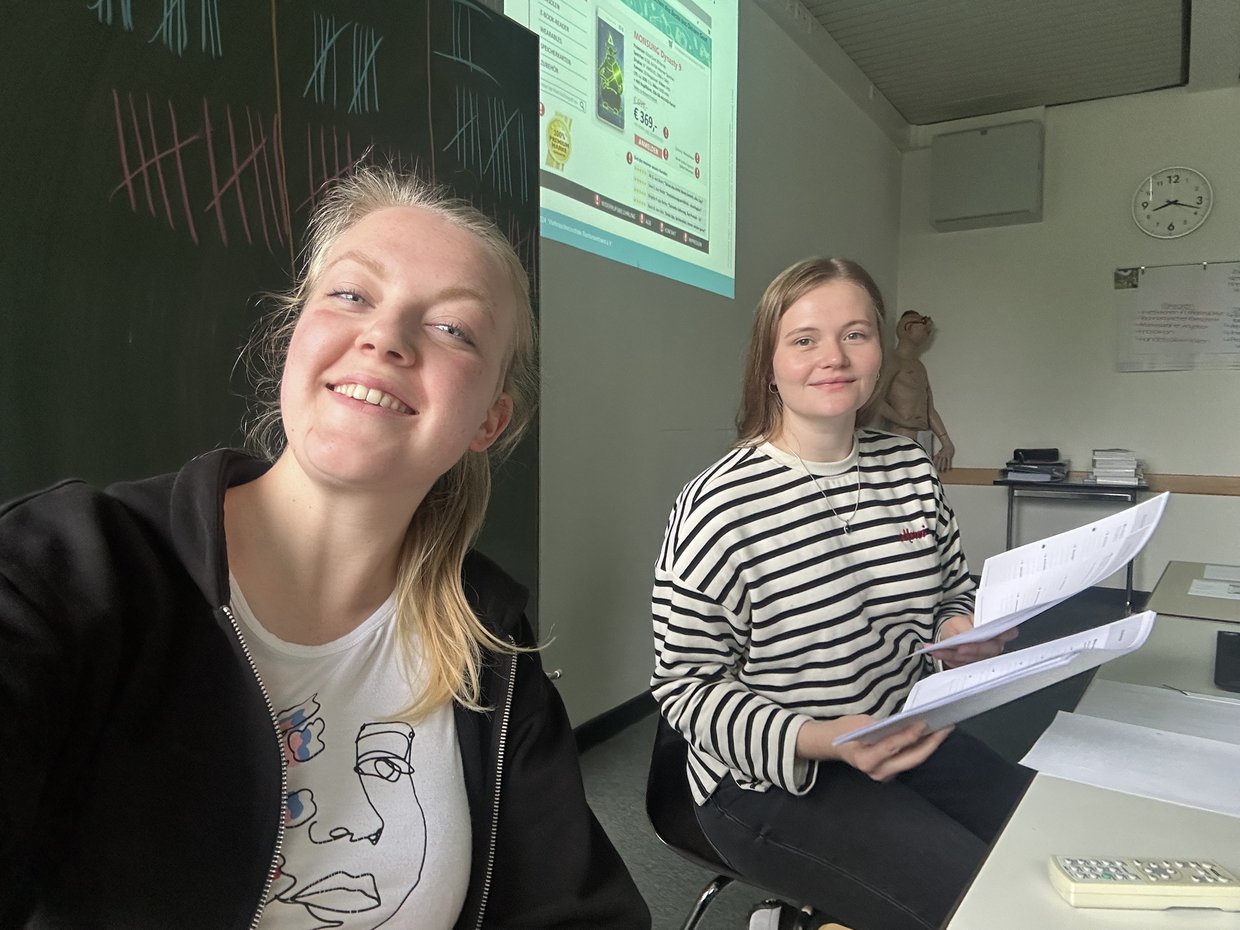 Rachel und Famke informierten die angehenden Verwaltungsfachangestellten über Sicherheit im Internet. Insbesondere ging es um die Themen Fake-Shops, Finfluencing und In-Game-Käufe. Das Projekt war modular aufgebaut.