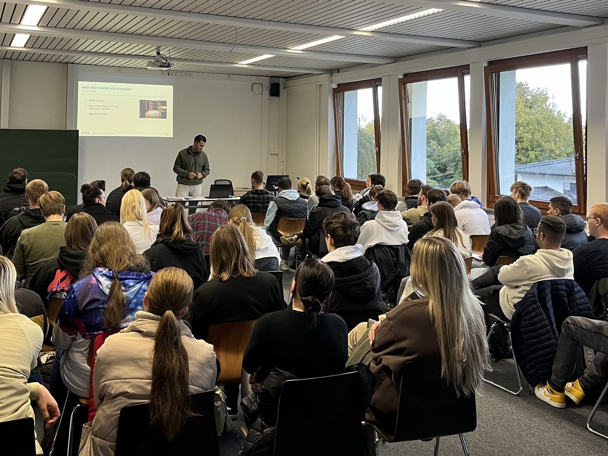 Am Dienstag, 25.10.2023 besuchte Herr Koufany vom Finanzamt Soest die Verbraucherschule Hubertus-Schwartz-Berufskolleg und gab den Schülerinnen und Schülern einen grundlegenden Überblick über das deutsche Steuersystem.