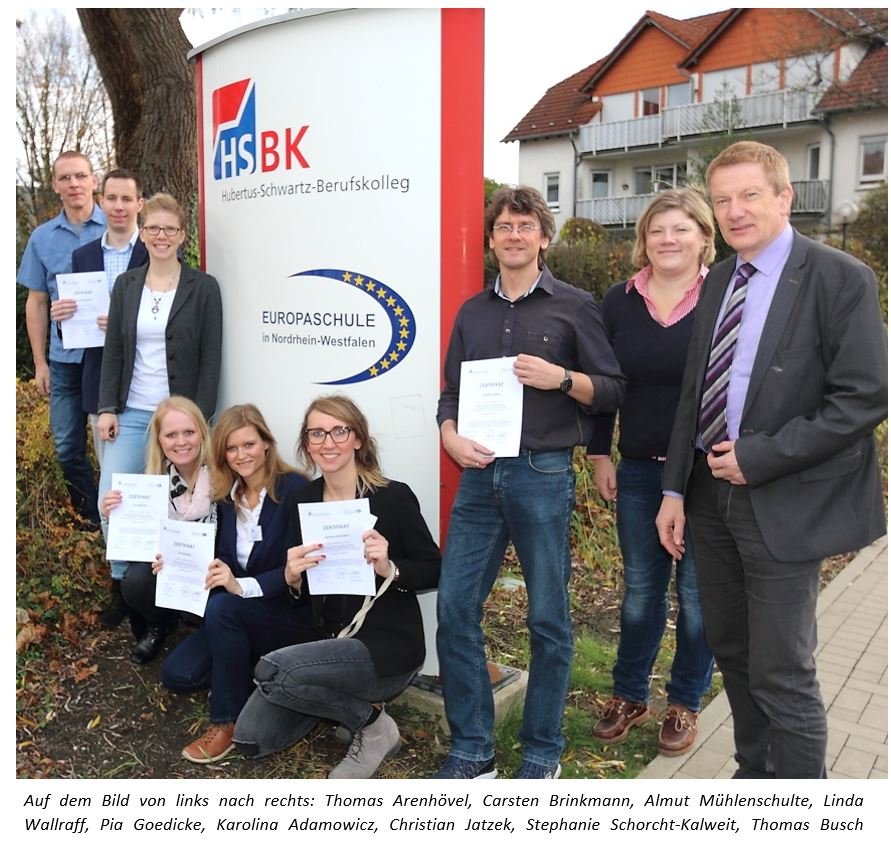 Um dem Zulauf von Flüchtlingen gerecht zu werden und diese fachgerecht zu beschulen, bot sich der Studiengang „Mehrsprachigkeit, Deutsch als Zweit- und Fremdsprache“ der Universität Paderborn als perfekte Möglichkeit an. Organisiert wurde dieses Weiterbildungsstudium durch das Hubertus-Schwartz-Berufskolleg, insgesamt 35 Teilnehmer – allesamt Lehrkräfte von öffentlichen Berufskollegs aus dem Kreisgebiet - füllten den Seminarraum am Hubertus-Schwartz-Berufskolleg. An 12 Nachmittagen und mit insgesamt 180 Stunden E-Learning erarbeiteten die Lehrerinnen und Lehrer die deutsche Sprache „von der Pieke auf“. Reger Austausch, neue Ideen und Projekte waren das Ergebnis am Ende des Zusatzstudiums, welches alle Absolventen nach Erstellung einer Abschlussarbeit mit Erfolg bestanden. Die Internationalen Förderklassen gibt es am Hubertus-Schwartz-Berufskolleg schon seit 2015. Unterrichtet werden die überwiegend männlichen jugendlichen Schüler meist von Kolleginnen und Kollegen, die eigentlich Englisch, Wirtschaft, Religion, Spanisch oder Französisch unterrichten. Einige gute Lehrwerke erleichtern den fachfremden Unterricht.