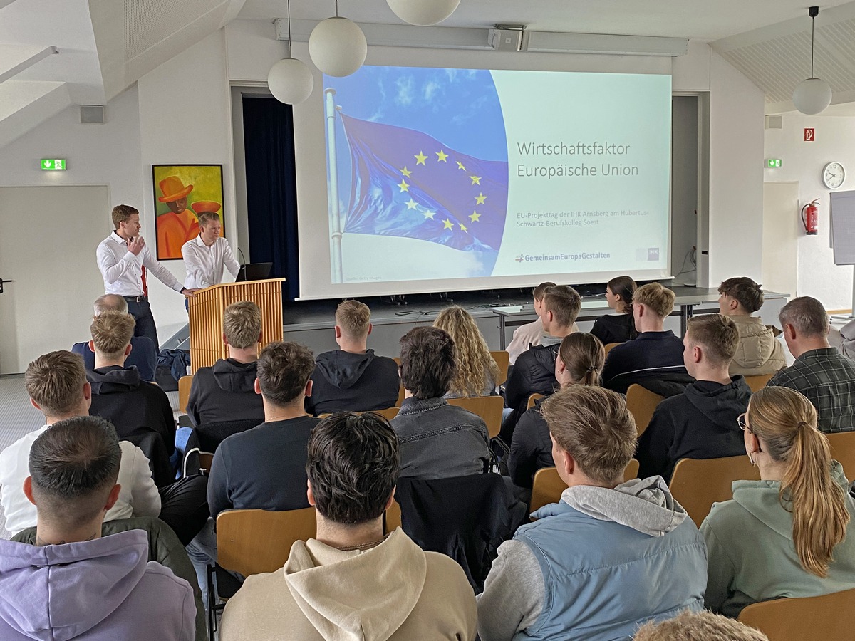 Anlässlich der Europawahl 2024 organisiert die IHK Arnsberg Vortrags- und Diskussionsrunden in verschiedenen Berufskollegs: IHK bringt Europa in die Berufsschulen