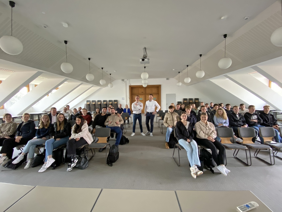 In der anschließenden Diskussion wurde deutlich, dass die Europawahl am 9. Juni bei den anwesenden Jungwählern und in den sozialen Medien bislang kaum eine Rolle spielt. Die beiden Referenten motivierten die Auszubildenden sich mit der Europawahl aktiv auseinander zu setzen. Als eine mögliche Orientierungshilfe verwiesen sie auf den Wahl-o-mat zur Europawahl 2024. Mit der Europawahl am 9. Juni werden entscheidende Weichen für die Zukunft der EU gestellt und alle Wahlberechtigten können aktiv mitwirken. Für Marc Stange ist es „ein Privileg, sich an einem demokratischen Prozess beteiligen zu können! Die EU ist und bleibt ein wichtiger Faktor für Wirtschaft, Sicherheit und Umwelt! Deshalb: Geht zur Europawahl – jede Stimme zählt!“