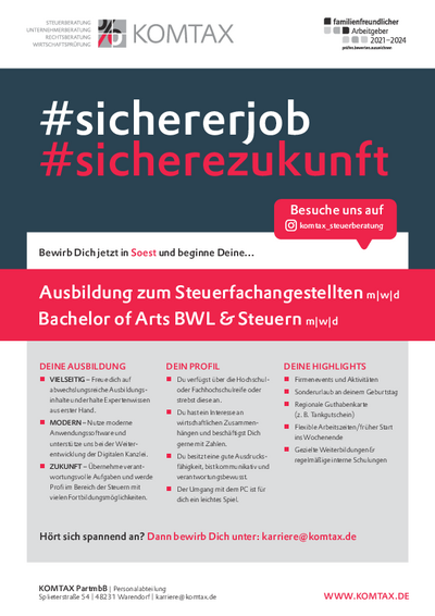 | Komtax Steuerberatung und Wirtschaftsprüfung | Am Handwerk 4 | 59494 Soest | https://www.komtax.de |