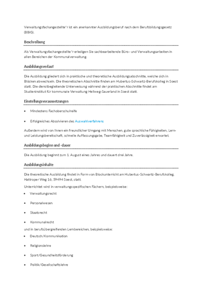Die Klasse des Ausbildungsberufs "Verwaltungsfachangestellte/r - Kommunalverwaltung" am Hubertus-Schwartz-Berufskolleg in Soest setzt sich zusammen aus Auszubildenden der Kreise Soest, Unna, Städte Fröndenberg, Geseke, Lippstadt, Rüthen, Warstein, Werl, Werne, Hamm, Gemeinden Anröchte, Bad Sassendorf, Bönen, Ense, Holzwickede, Lippetal, Möhnesee sowie Einrichtungen des Landschaftsverbandes Westfalen-Lippe (Kliniken), der katholischen und evangelischen Kirchenkreise sowie der Standortverwaltung der Bundeswehr.